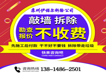 蘇州伊諾爾拆除工程有限公司是一家規(guī)模較大,經濟實力雄厚的專業拆除公司,提供室內拆除,砸墻,地磚,墻磚,頂,管道,公寓,酒店,辦公樓拆除服務,我們本著誠信經營,公平交易的原則,從事家裝,工裝,大型商場拆除,建筑物廠房樓房拆除工程并回收所有舊貨設備。我們從事拆除行業多年,具有多年的拆除經驗,提供多種建筑的內外拆除施工服務,因為專業性,安全性,可信度高而獲得了客戶的認可。